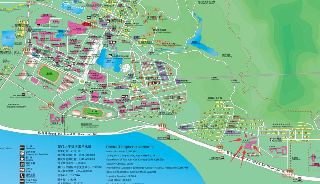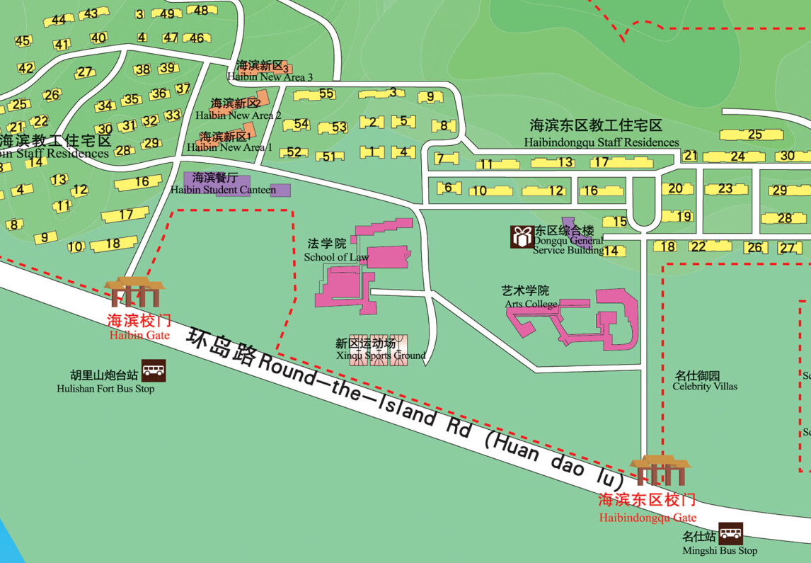 Go to the online Xiamen University campus map http://map.xmu.edu.cn.