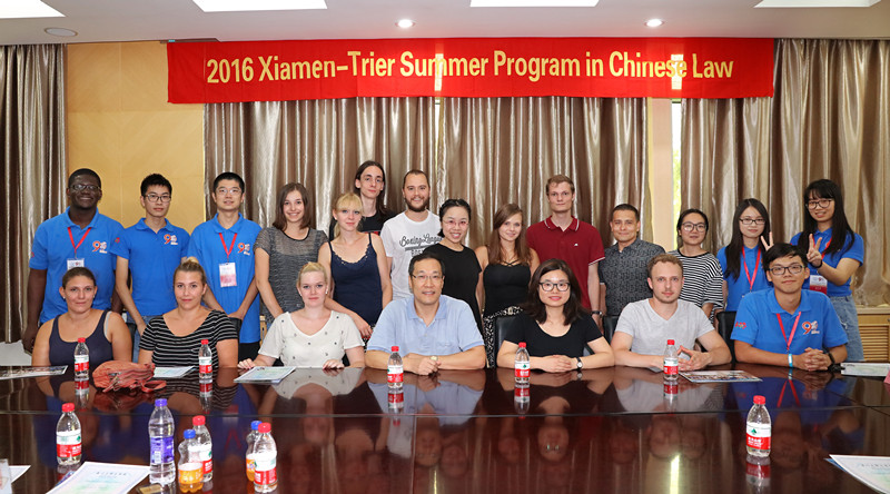 On September 27, the closing ceremony of the 2016 Xiamen-Trier Summer Program in Chinese Law was held in Room 419 of School of Law, Xiamen University. Dean Professor Song Fangqing attended the ceremony. Vice Dean Professor Zhu Yansheng Hosted it. 12 students from Trier University of Germany completed the 10-day lectures in Xiamen and will continue the program in Beijing for 2 days.