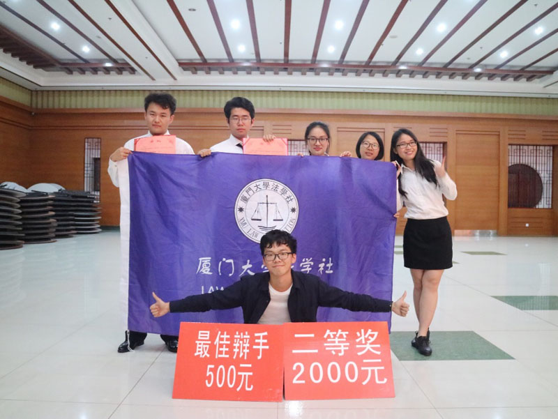 Five university teams, including from xiamen University, jimmy Univeristy, and , participated in the moot court competition.After 3 intense rounds of competition, the XMU team emerged as the runner-up, and Liang Yang won the title of “best debater”.