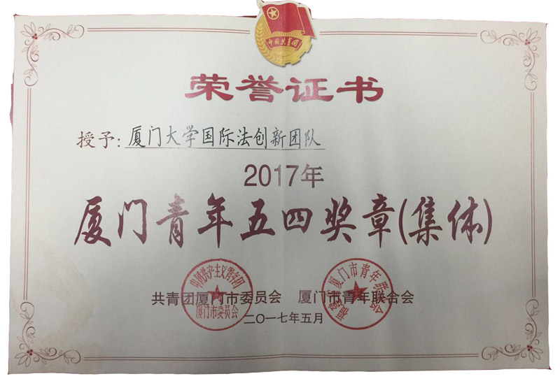 Based on the dedication of Xmu’s innovation team of international law, the team was nominated for “Xiamen City’s Youth May 4th medal (group)” and won the prize.