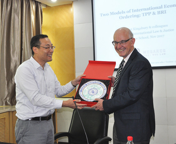 The lecture, which was scheduled to start at 3pm, began with a fully packed auditorium with over 40 students and professors who had come to enjoy the academic discourse which was about to ensue. Benedict Kingsbury, an American expert in the field of international investment agreements did not shy away from flaunting his vast knowledge concerning the TPP and also drew a highly appreciative comparison between the TPP and the BRI. Highlighting the various stages of change in the legal arena and policies of countries and regions of the world, the lecturer adequately briefed the participants on statistical and sequential progress of development by way of investment agreements within China and the USA. Further emphasis was also placed on the order and ordering nature of policies within specified circles of development.