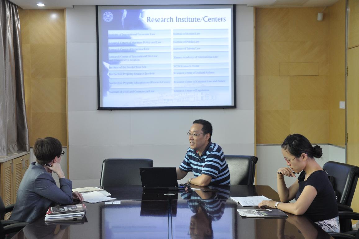 Vice Dean Zhu expressed warm welcome to the guest on behalf of XMU law school. He gave an introduction of the history, teaching groups, research institutes/centers and academic program of XMU law school, with the focus on the introduction of its international collaboration with law schools abroad. He also expressed his willingness to explore possibilities of cooperation with UOttawa in faculty and students exchange, joint degree program and research.