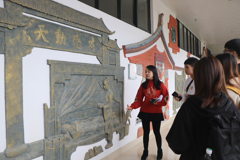 实践队成员在家事审判庭庭长吴志婷的带领下参观了富有特色的家事审判庭功能区,如家事法庭长廊、少年法庭、家事法庭和家事调解室等。其中,家事法庭长廊以老鲤城的四个典型故事为轴线、以浮雕为呈现形式,新颖别致,被福建省高院马新岚院长称赞为“法德相融之巷”。