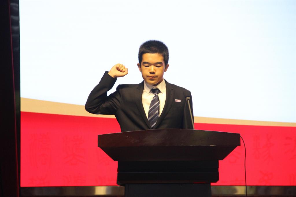紧接着,由2019级本科生陈思宇作为新生代表发言。他短暂回顾了自己高中三年的风雨洗礼,而对于未来的大学生活,他以一句恳切的“知者不惑,仁者不忧,勇者不惧”与全体2019级新生共勉,并表达了自己愿做时代的弄潮儿,勇担责任、筑梦前行的美好期盼。