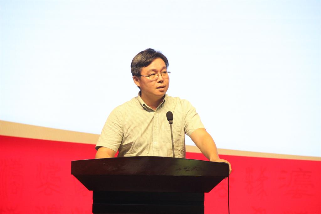 随后,教师代表、民商法教研室郑永宽副教授发言。他以幽默风趣的语言讲述了他大学时期的种种故事,并以此警示和勉励2019本科新生。同时,他鼓励大家应当博览群书,以保证扎实的专业知识基础。最后,郑永宽副教授告诫新生们应当具备敢于质疑的精神,学会自主思考和判断,切忌人云亦云。