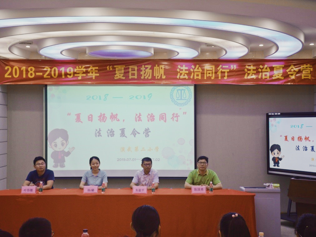 开营仪式上,厦门市演武第二小学德育处主任叶伟敏老师首先对法治夏令营开营式致辞。他指出这是本校开展暑期夏令营活动的第十年,今年将活动主题聚焦于“法治”,意义在于通过“法治夏令营”这一生动有趣的形式,培养小学生的法治观念,引导学生学法、知法、守法、用法,培育和践行社会主义核心价值观,牢固树立社会主义法治理念和对法律的信仰。