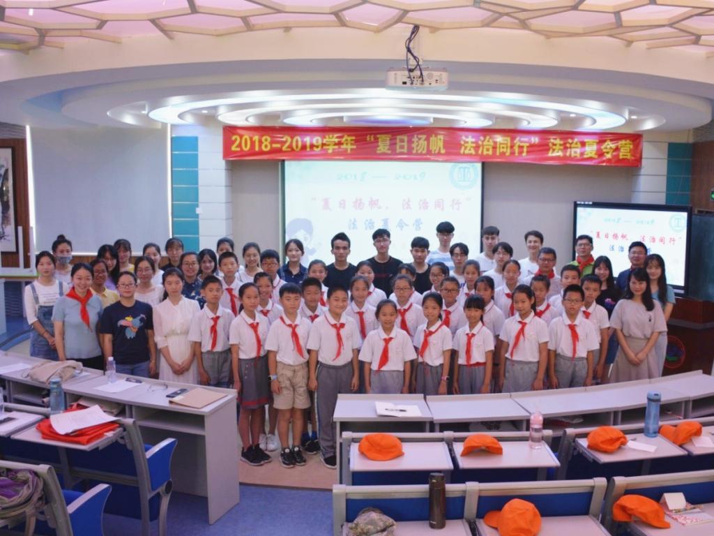 2019年7月1日上午,时值建党98周年纪念日之际,厦门大学法学院“青少年法治课堂”项目组近30位成员前往厦门市演武第二小学开展“夏日扬帆,法治同行”法治夏令营活动。该活动由厦门市演武第二小学联合厦门大学法学院、厦门市思明区司法局滨海司法所、厦门市公安局思明分局滨海派出所等单位共同举办。本次活动以“提高学生法律意识、营造和谐安全的假日氛围、丰富学生暑期生活”为目的,以一堂生动有趣的“法律课”加强对党和国家接班人的思政教育,为培养其共产主义道德品质添砖加瓦。演武第二小学校长陈国勇、德育处主任叶伟敏、思明区滨海司法所所长朱毅平以及厦大法学院团委副书记杨璐出席活动。