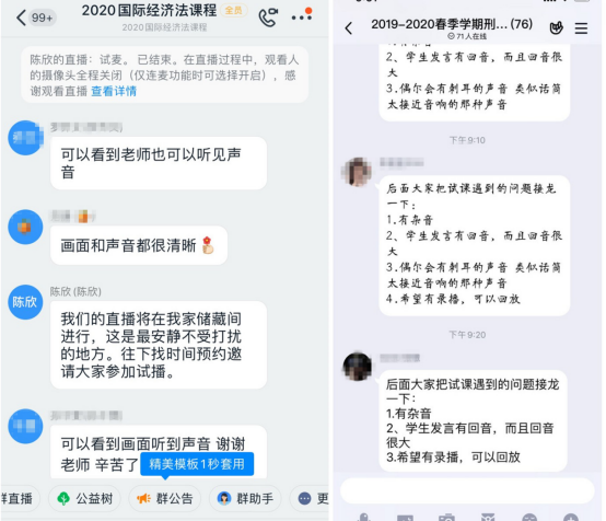 除未开课的课程外,所有课程均建立了课程群。学院教学秘书和辅导员协助任课教师通知选课学生入群。在17日开学之前,所有选课学生均已进入课程群。上课之前,辅导员再三强调上课秩序。学院上下通力合作,确保线上教学的开展。