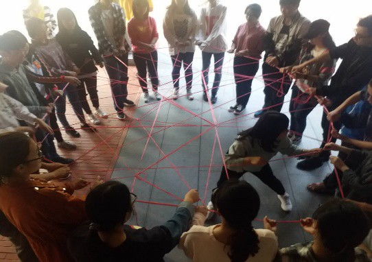 第一个游戏叫做鸡蛋和凤凰,每一对同学相互之间石头剪刀布,赢者升级,输者降级。经过短暂的几分钟,许多同学便完成了升级,在一旁列队。通过这个游戏,星期六一下午的素拓正式拉开序幕。同学们都在很短时间内进入了状态。