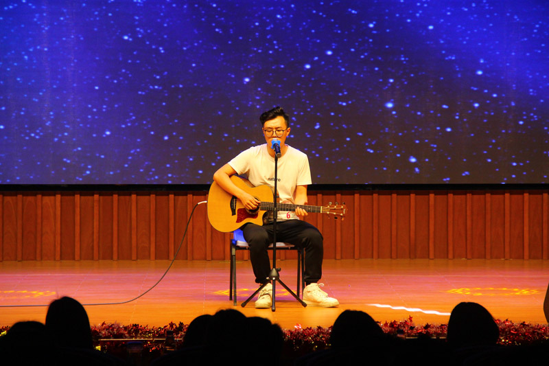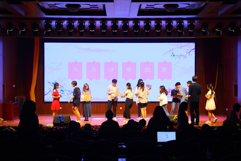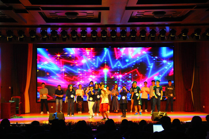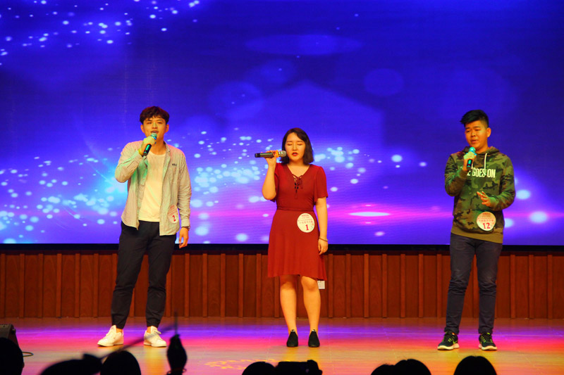 首先,由上届十佳歌手大赛的第一名黄伟佳同学以及参加决赛的十二位选手和文娱部的小伙伴们带来了精彩的开场表演,他们以一首歌曲串烧调动了现场观众的热情,他们歌声飘扬,活力四射,在舞台上尽情绽放着青春的色彩。