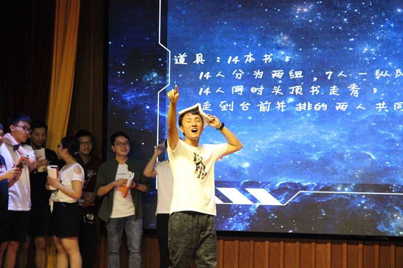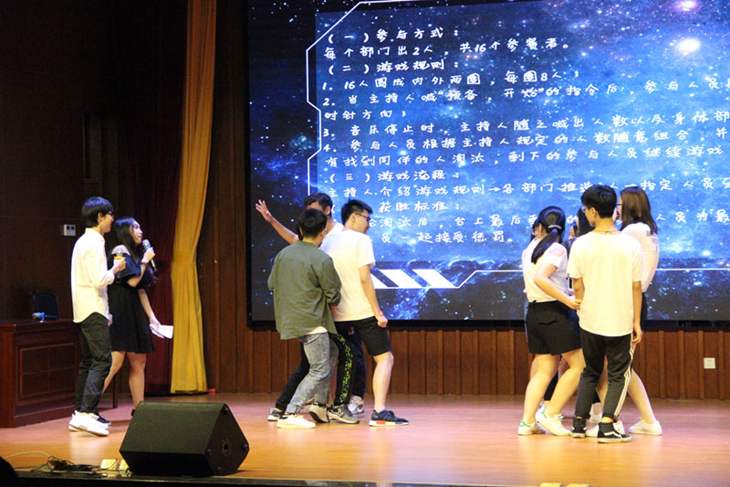 中场游戏环节,每个部门派出了代表进行了一场非常考验反应速度的小游戏。