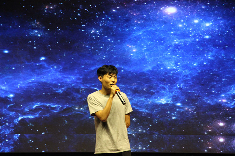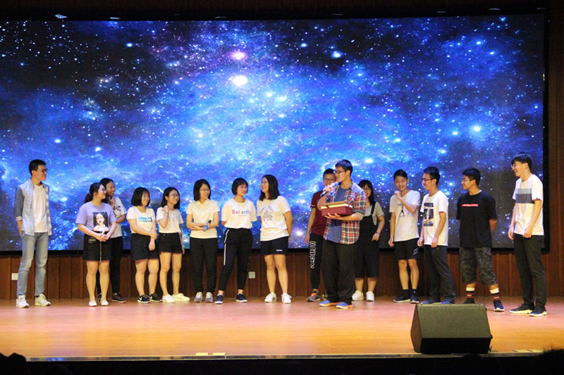 上半场,首先是学术部进行表演。他们以一首歌曲串烧《情歌王》唱出了他们对部长赵永莉深沉的爱和感谢,精心准备的礼物被送到部长手上时,现场洋溢着的热烈气氛为大会拉开了一个完美的序幕。