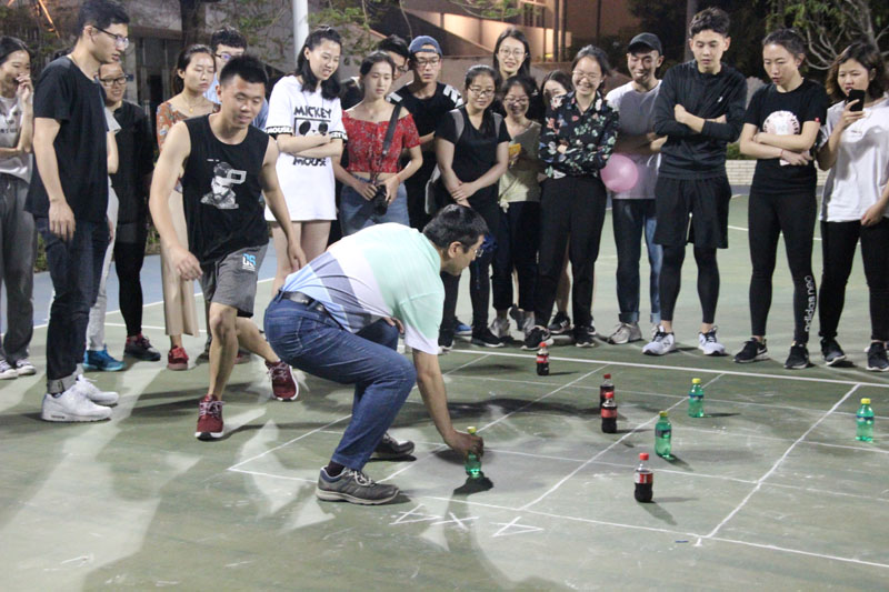 在第一轮破冰游戏当中,各位队员们连成一个大圈,蓄势待发,准备为了师门荣誉而战。