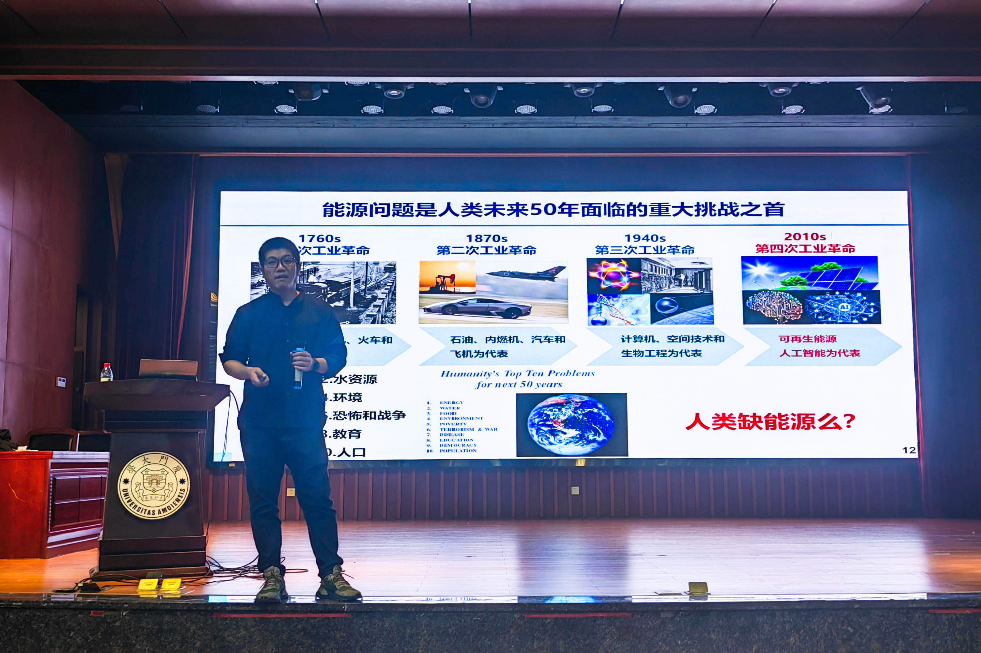 方晓亮老师从人类应用能源的历史回顾引入,在互动中引起同学们对我国能源发展现状的思考。他指出,“双碳”目标下,我国亟需改变以传统能源为主、碳排放高的能源消费结构,着力构建以新能源为主体的新型电力系统。我国在储能能力方面存在巨大缺口,多元化储能技术的发展是关键之举。他以详实的数据和技术项目介绍了氢能的显著优势和广阔应用前景,从国家政策、央企布局、国际发展三个方面突出强调了氢能在能源体系中的重要地位。