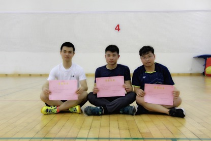 男子单打比赛,从左到右:罗骞(亚军 ),李天健(冠军),李铮(季军)
