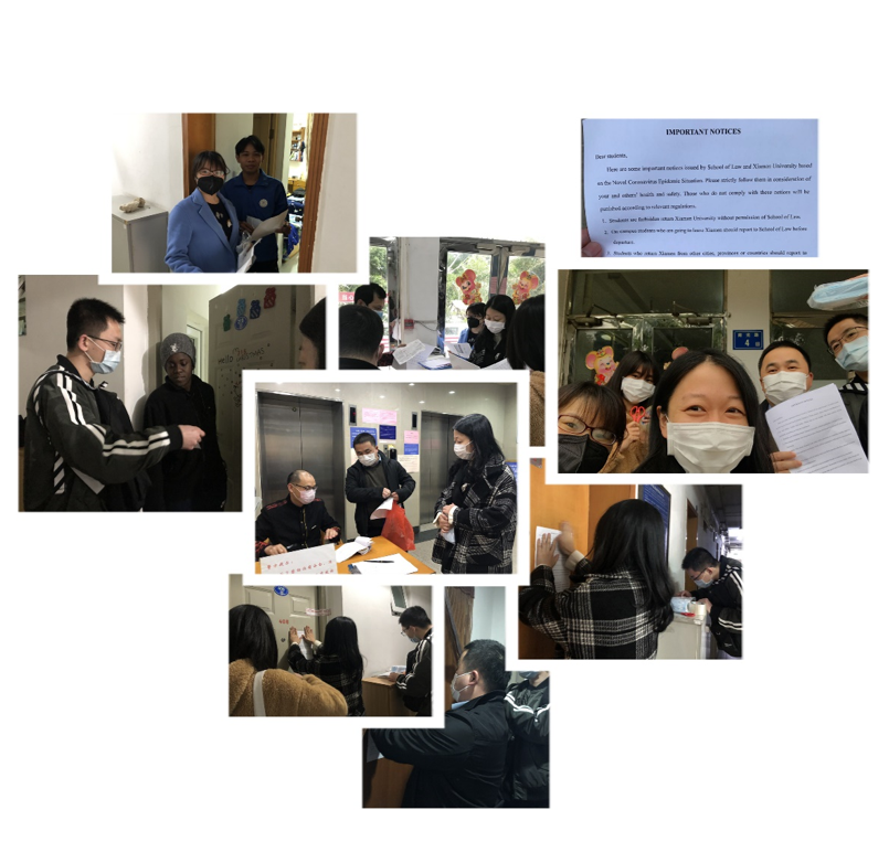 本次摸排工作的范围涵盖南光四号楼、南光五号楼与蔡清洁楼中,法学院与南海研究院共23名国际学生的宿舍。工作组按照国际学生宿舍信息名单,逐一走访,查看前台记录与宿舍封条,确认学生离校留校情况是否与上报情况一致。此外,工作组为同学们送去了由福建省外事办公室提供的免费口罩,向每名留校同学发放了6只口罩,发放了工作组拟定的疫情期间重要通知,叮嘱同学们要遵守规章制度,有任何情况要第一时间向学院反馈。同学们纷纷表示感谢,均表示会认真遵守学院要求,不会违反规定。对于未留校的同学,工作组将通知粘贴在宿舍门上,确保通知工作无死角,以防出现特殊情况。