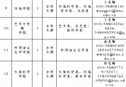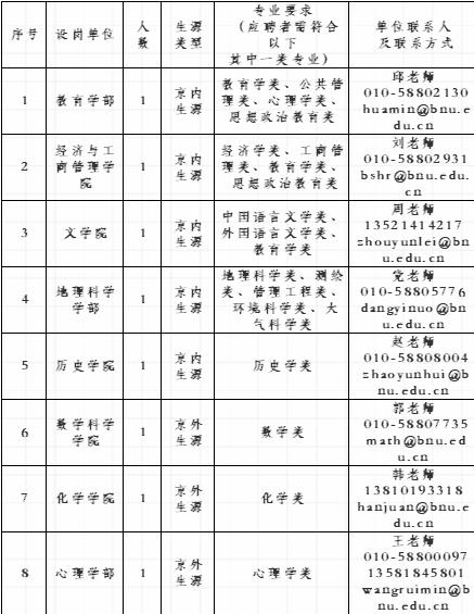 表:北京师范大学2020年双肩挑辅导员招聘信息一览表