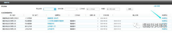 (一)社会人员可登陆福能集团招聘专区(网址:http://218.5.1.214:83/rmweb/rmweb_zhaopin.html),并参照系统所示路径进入社会招聘,点击“申请岗位”进行注册后,填写应聘相关信息: