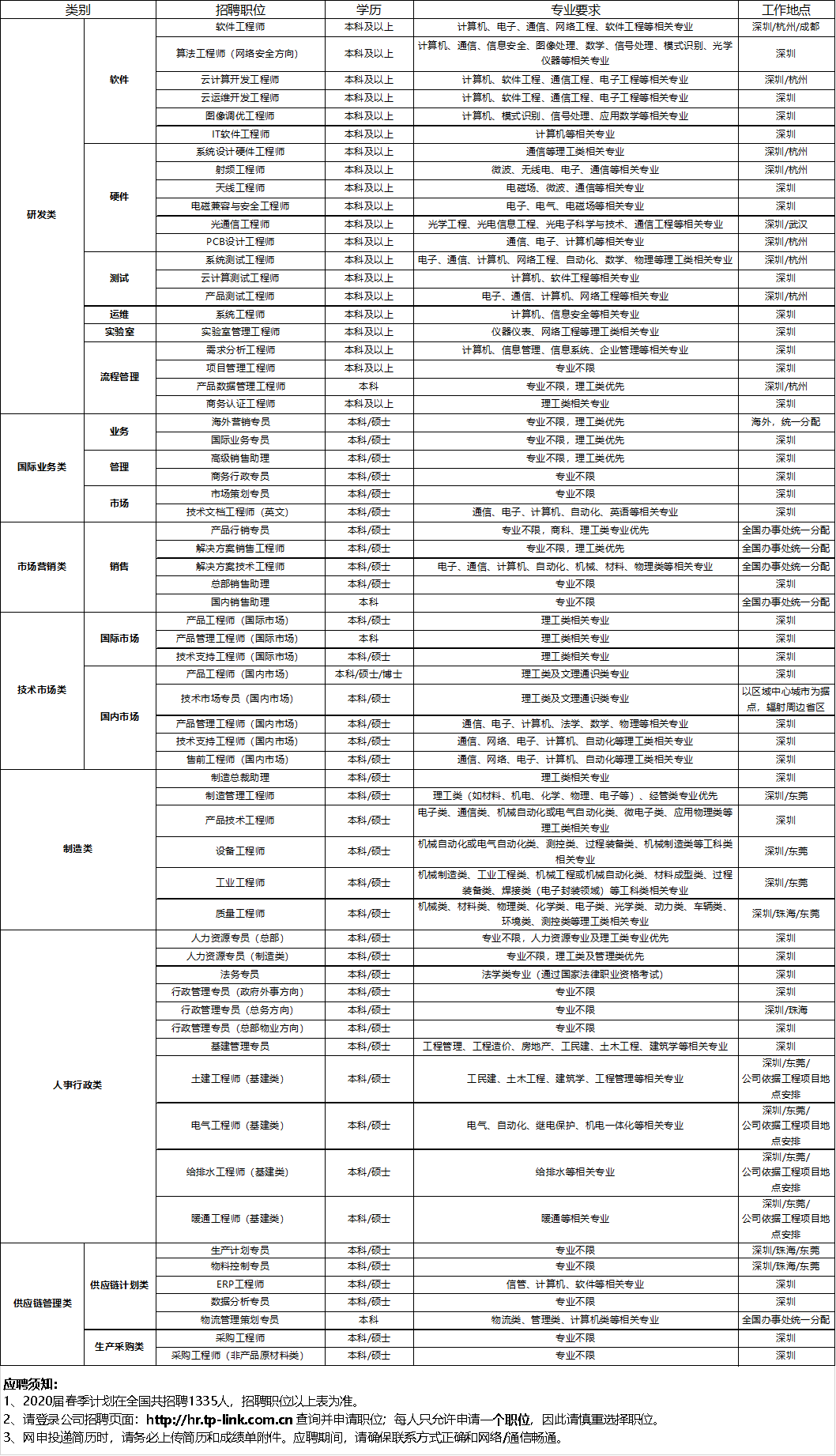 应聘方式:网申地址:http://hr.tp-link.com.cn(每人仅能申请1个职位)