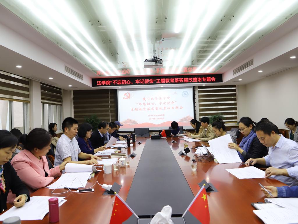 11月28日下午,法学院在B220会议室召开“不忘初心、牢记使命”主题教育落实整改整治专题会,法学院全体党政领导班子成员、行政人员出席会议。会议由法学院党委副书记郭锦星主持。
