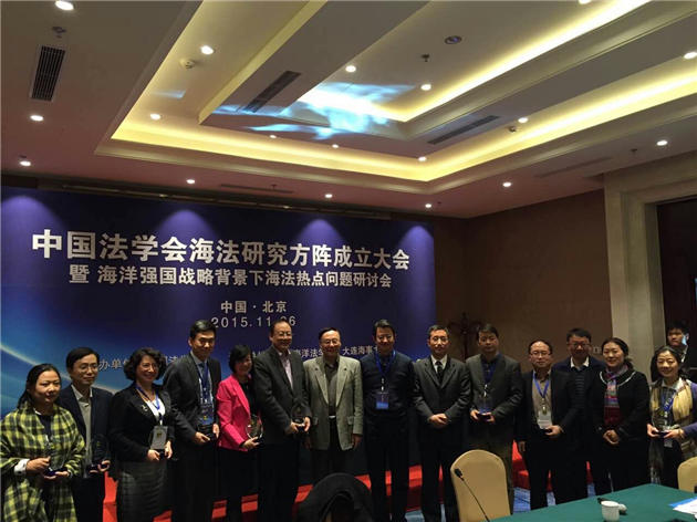 2015年11月25-26日,“‘海法研究方阵’成立仪式暨海洋强国战略下海法热点问题”学术研讨会在京召开。此次会议由中国法学会主办,中国海洋法学会、大连海事大学海法研究院共同协办。出席本次成立仪式的领导有中国海洋法学会会长高之国,国家海洋局战略研究所副所长贾宇,大连海事大学副校长单红军教授,海南大学副校长王崇敏教授,以及来自中国法学会、各理事单位代表及国内知名涉海法律专家团队代表。作为“海法研究方阵”理事单位代表,厦门大学法学院副院长何丽新教授、南海研究院施余兵、林蓁等老师应邀出席会议。