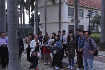 从学村门口集合后,金融法师生来到了华侨大学华文学院。刘志云老师和达梅师姐向同学们介绍,华文学院是华侨大学对外汉语教学的单位,其主要任务是进行汉语培训,促进中外文化交流。漫步于学院中,四周带有南洋、西欧建筑元素的“嘉庚风格”校舍错落有致地排列,雍容典雅,风情独特。