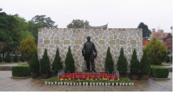 沿路前行到达陈嘉庚先生故居,白石砌墙,绿瓦盖顶,极具闽南特色。故居西侧是陈嘉庚生平事迹陈列馆,大量文献资料生动地表现陈嘉庚一生的光辉业迹。故居前方是根据陈嘉庚遗愿建成的归来堂,陈嘉庚先生的铜像伫立在归来堂前,铜像后石屏上刻有毛泽东主席的“华侨旗帜,民族光辉”题词。岁月静静地流淌,时光在铜像上刻下年华的印记,同学们静静驻足,深深缅怀。
