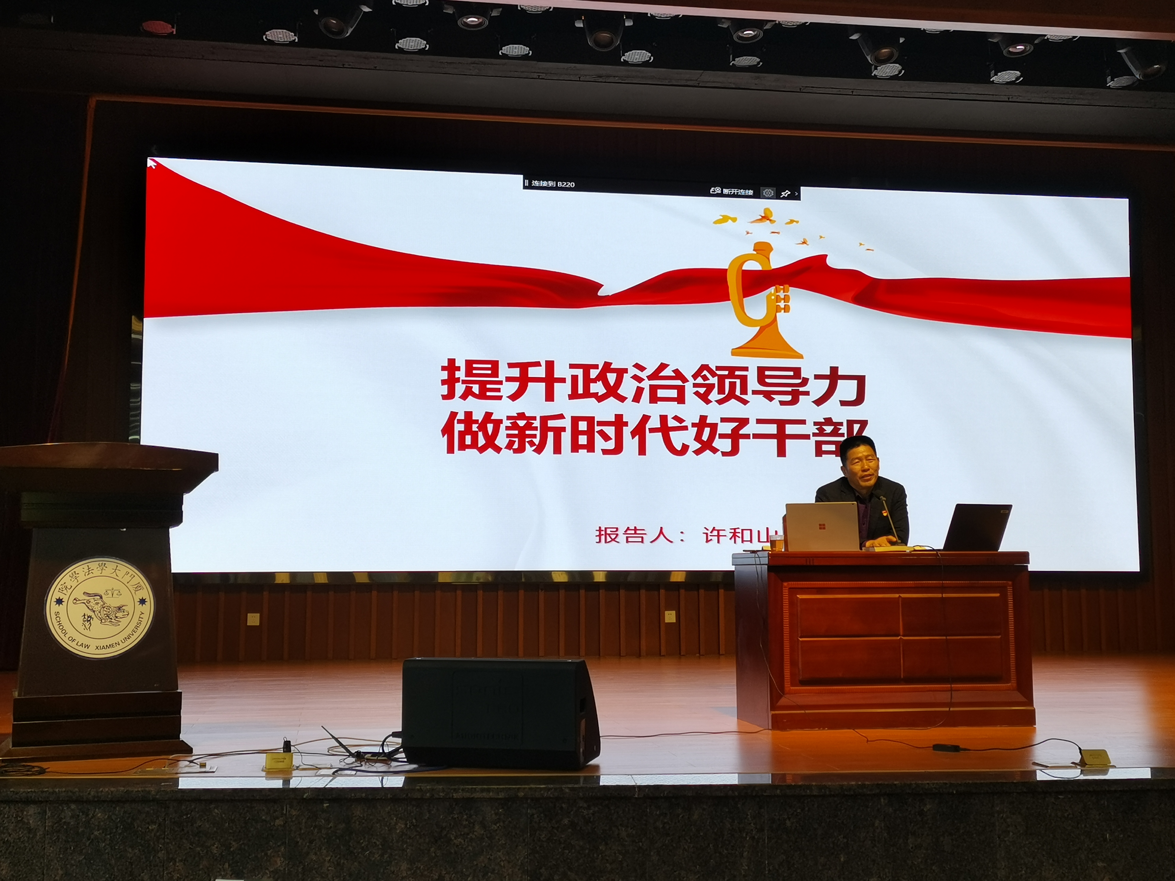 1月15日下午,学院党委书记许和山讲授题为“提升政治领导力,做新时代好干部”的专题党课。党委班子成员、师生党支部书记、党政管理人员和专任教师代表参加学习,党课由院党委副书记郭锦星主持。