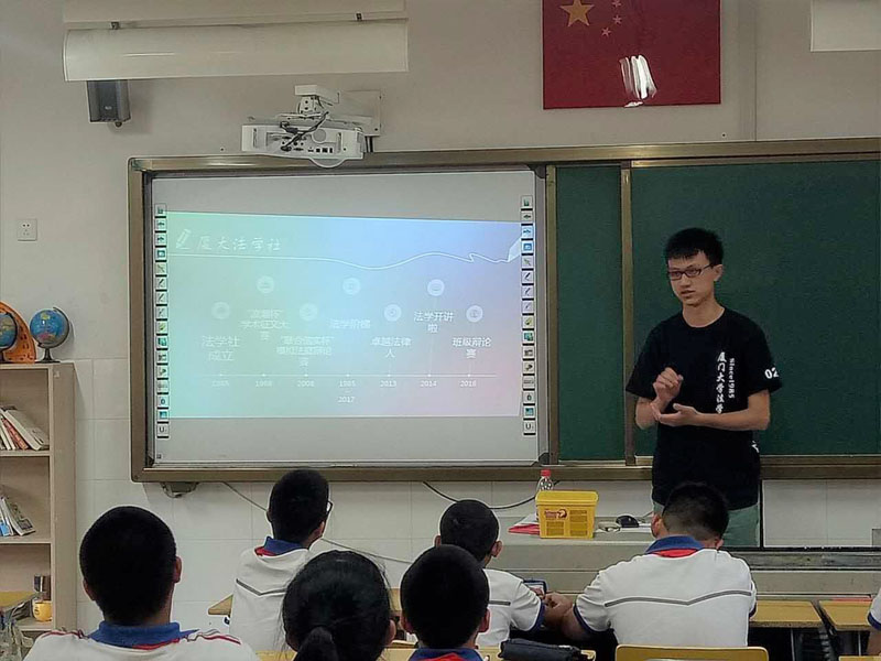 据悉,“兴趣课堂”是厦门大学社团联合会与厦门市双十中学思明分校联合开展的活动。每周由厦门大学的一个社团负责为该校学生进行“兴趣课堂”授课。据主管该项目的王振老师介绍,邀请哪个社团来授课是同学们自己投票决定的,之前选择的往往是魔方社、棋牌社这类兴趣社团,他也惊讶于这些孩子这次选择法学社这一学术性质极强的社团来授课。而本次“兴趣课堂”在三名同学的精心准备下,收获到了意想不到的效果,也为法学社作为专业性极强的理论学术型社团,如何更好地宣传普法教育提供了宝贵的经验。