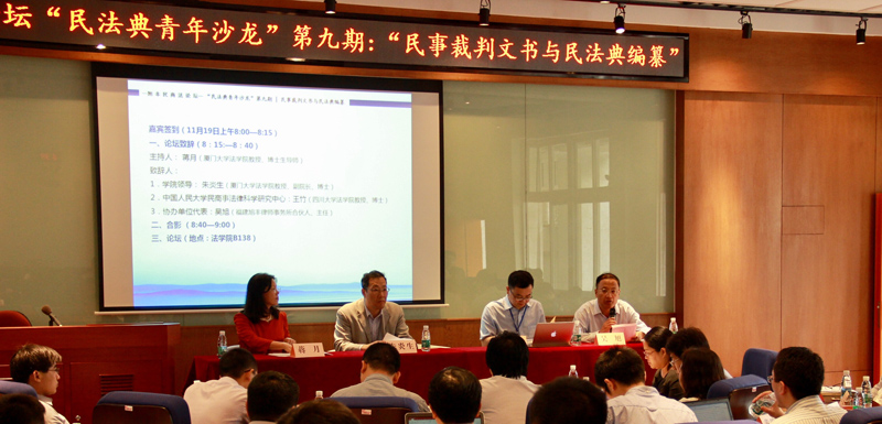 2016年11月19日,由中国民法学研究会、中国人民大学民商事法律科学研究中心、厦门大学法学院主办,福建旭丰律师事务所、厦门大学法学院侵权法研究中心协办的第九期“民法典青年沙龙”在厦门大学成功举办。开场的论坛致辞环节由厦门大学法学院蒋月教授主持。法学院领导朱炎生、中国人民大学民商事法律科学研究中心王竹教授、福建旭丰律师事务所合伙人吴旭先后进行致辞。来自厦门大学、四川大学、清华大学、西南政法大学、集美大学、北京航空航天大学、山东大学、首都师范大学、厦门市中级人民法院、烟台大学、江苏大学、西南财经大学、吉林大学、宁波大学、中国社科院法学所、上海市社科院、中国人民大学、福建旭丰律师事务所等单位的80余位专家学者、司法实务界人士参加了本次学术沙龙。此次沙龙共收录了18篇学术论文。