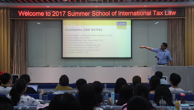 本次暑期班为期五天,由维也纳经济大学奥地利及国际税法研究中心的教学团队、中国国际税收研究会副会长张志勇先生及CITACT-XMU的老师共同授课,授课内容包括:国际税收协定的结构、国际税收协定的解释与适用、国际税收协定的征税权划分规则、税收协定与国内税法的关系、防止税基侵蚀与利润转移计划、识别与分配规则冲突及其对策、滥用税收协定及国内与国际反避税规则分析、“一带一路”倡议与中国的国际税收政策问题、税收与投资的关系问题、营业利润和常设机构的最新案例分析、无形资产的转移定价问题、转移定价的二次调整问题、股息利息及特许权使用费的国际税收新案例分析、税收协定中软件所得的新案例分析、雇佣劳务所得及退休金的国际税收新案例分析、消除双重征税方法的新案例分析、税收协定中的非歧视待遇条款分析以及税收情报交换的最新国际发展等。