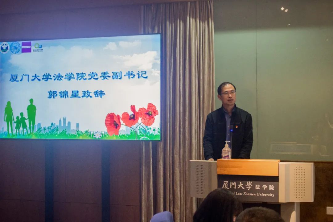 法学院党委副书记郭锦星在致辞中表示,学院党委非常重视此次活动。郭锦星首先对第一届禁毒讲师团取得的成果予以了肯定。过去一年,法学院禁毒志愿者讲师团以实际行动彰显了厦法学子蓬勃向上的精神面貌,他们深入社区、景区等场所开展了8场形式多样的宣传活动,共服务千余人次,并得到了中国法制网等多个官方媒体专题报道。郭锦星希望,新一届禁毒讲师能够充分发挥自己的法学专业优势,结合鲜活的社会实践,做好禁毒宣传的“先锋队”“排头兵”,接续上届讲师团的优良风范,勇担青春使命,做担当民族复兴大任的时代新人。