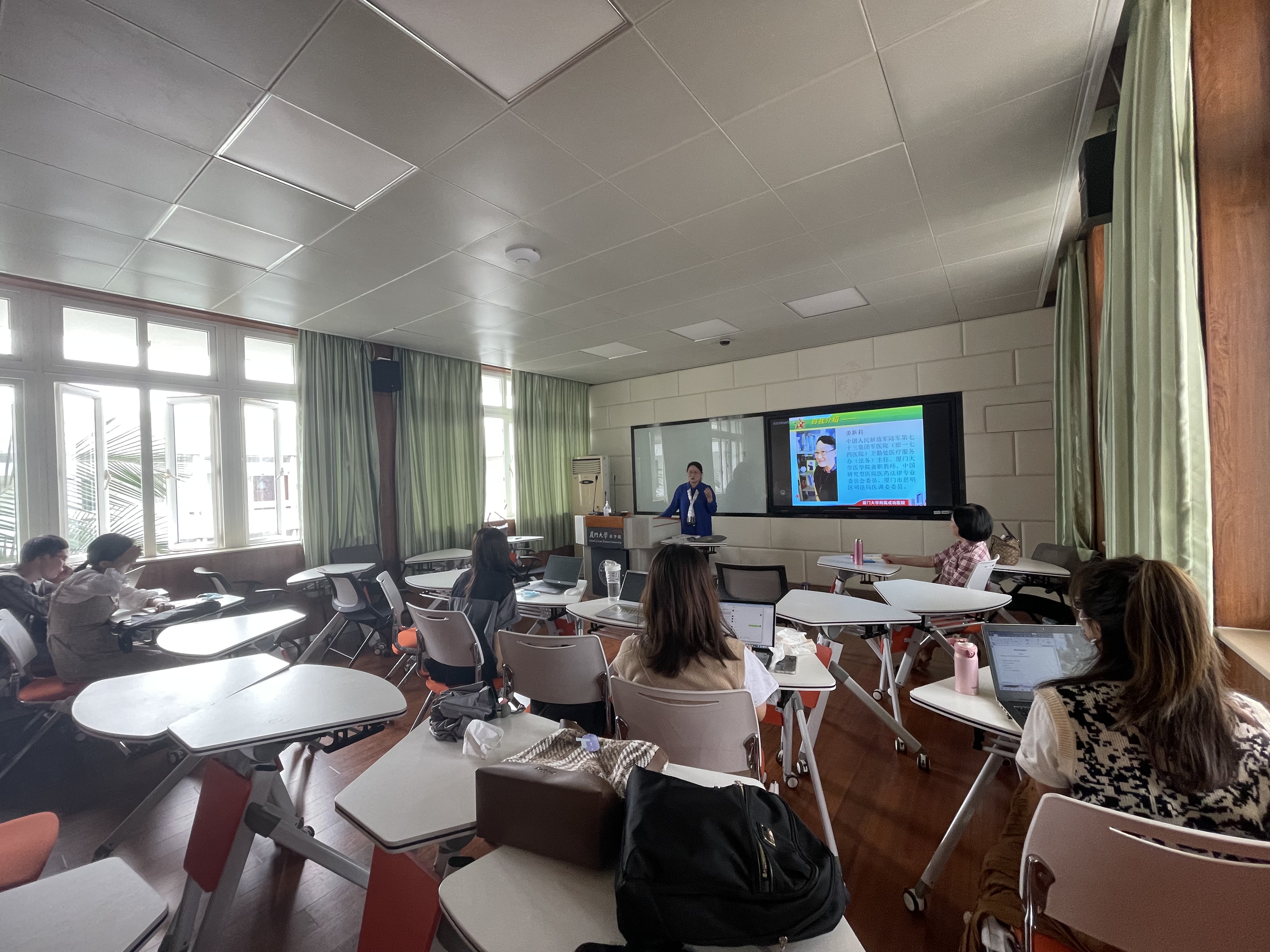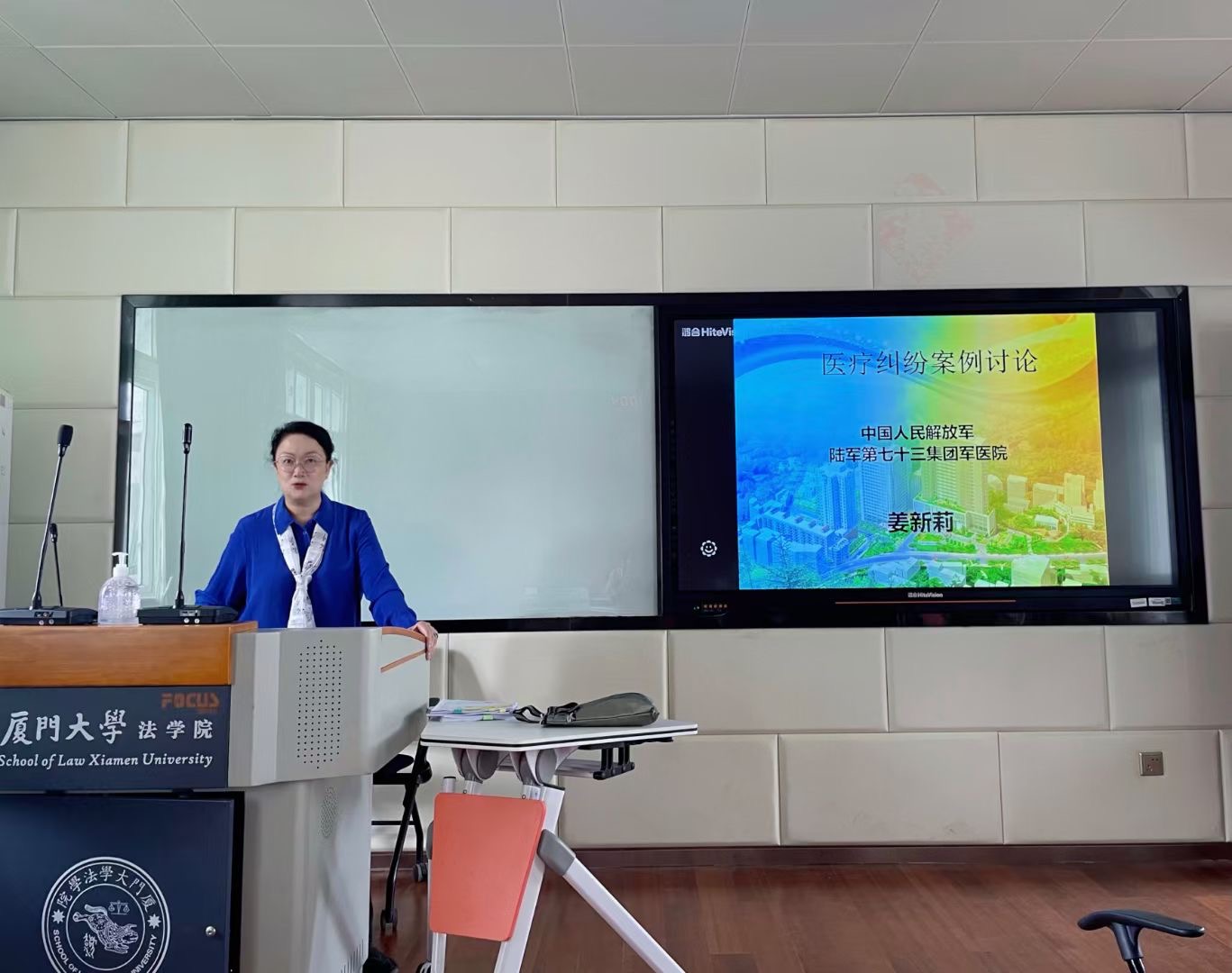 2021年11月3号上午10点,中国人民解放军陆军第七十三集团军医院(原第一七四医院)卫勤处医疗服务办主任、厦门大学医学院兼职教师姜新莉主任受厦门大学法学院张榕教授邀请,在法学院C521举行了有关医疗纠纷典型案例评析的主题讲座。