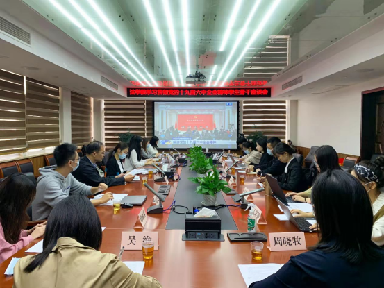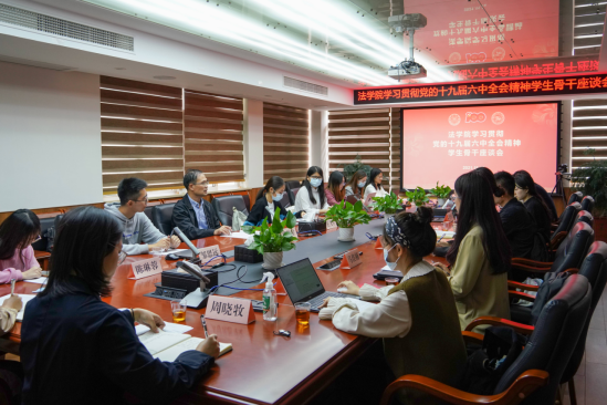 11月12日上午,法学院召开学习贯彻党的十九届六中全会精神学生骨干座谈会,与会师生收听收看中共中央举行的新闻发布会,交流研讨党的十九届六中全会精神学习心得体会。法学院党委副书记郭锦星出席座谈会并讲话。会议由法学院团委副书记周晓牧主持。