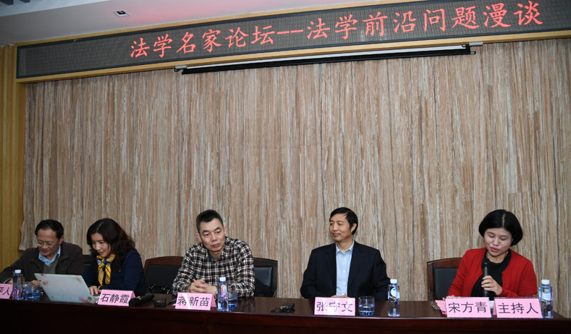 2016年12月18日晚七点,一场精彩纷呈的“法学名家论坛——法学前沿问题漫谈”学术盛宴在厦门大学法学院B137报告厅拉开帷幕。讲座的嘉宾分别是北京大学法学院院长张守文教授、湖南师范大学副校长、国务院学科评议组成员蒋新苗教授、中国对外经贸大学法学院院长、国务院学科评议组成员石静霞教授。厦门大学法学院院长宋方青教授担任主持人,廖益新教授担任点评人。何丽新教授、朱炎生教授、肖伟教授、韩秀丽教授以及法学院的学生齐聚一堂,满怀热情和期待聆听了来自前沿和权威的学术声音。