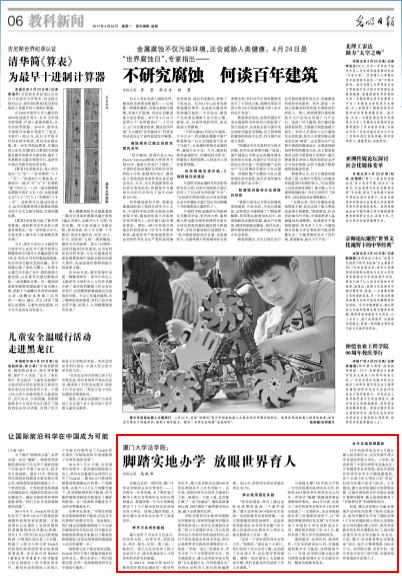 4月24日《光明日报》第六版(教科新闻)刊发了题为《厦门大学法学院:脚踏实地办学 放眼世界育人》的深度通讯。