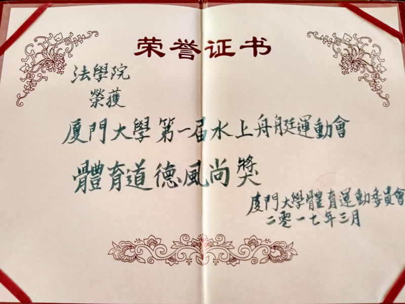 诗人王维曰:“舟行碧波上,人在画中游”。第一届水上舟艇运动会的成功举办,不仅为我院学生展现了一个敢于突破自我,体验运动乐趣的平台,同时也向全校展现了法学院“小而强”的精神作风。思源谷的湖面波峰泛银,百舸争流,千舟竞帆。当中国最美大学进行了一场别开生面的水上舟艇运动会,可爱的厦大学子共同织绘出一幅美丽的画卷。