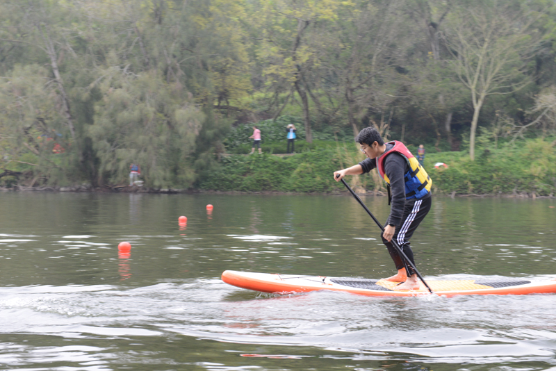 在上午第一个比赛男子单人桨板的项目中,我院黄春林和陈慈航两名同学率先出战。随后,黄春林又和姚宇涵一同参加男子单人皮划艇预赛。张雨濛、邹畅两名同学以及吕鸣鸿、张鑫、杨婷、颜佳艺四名同学则是分别参加了女子单人皮划艇预赛和混双皮划艇预赛。