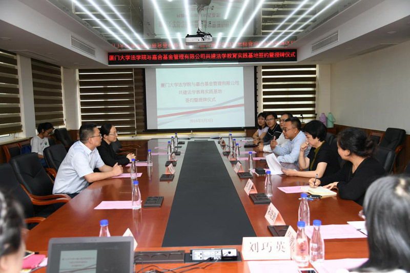 接下来,宋方青院长与郝艳芳董事长签订了《厦门大学法学院与嘉合基金管理有限公司共建法学教育实践基地协议》,李智勇书记与郝艳芳董事长为“厦门大学法学教育实践基地”授牌。