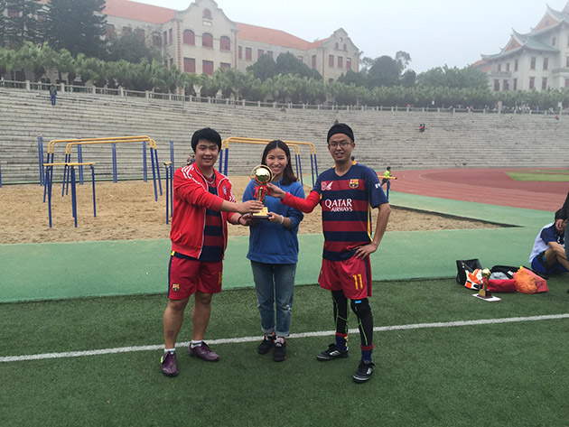 2016年4月9日,持续了一个多月的“大成杯”五人制足球赛终于在上弦场落下帷幕。在本届比赛中,研一队伍“K11”保持着出色的不败战绩,勇夺桂冠;大三“JUNIORS FC”也表现不俗,夺得亚军;法学院教工队更是宝刀未老,成绩亮眼,在三四名争夺赛中击败大二足球队,将季军收入囊中。