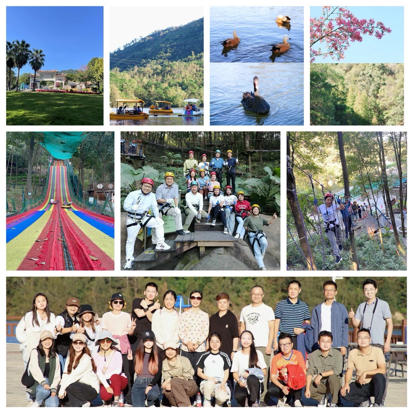 踏山而上,山峦叠翠云卷云舒,湖光山色如诗如画,山谷间演绎着山与水的千年绝美相恋。泛舟天湖,秋鸭戏水岁月静好,盈盈湖水让大家顿时忘却城市的喧嚣与浮躁;徒步竹林,在天然氧吧里自由呼吸着清新空气,感受绿色竹文化;激情彩滑,在速度与激情中尽情释放自我,每一次滑行都是一次对快乐的追逐;穿越丛林,体验心理建设、体能素质拓展,大家相互鼓励、坚持不懈,每过一关欢呼雀跃……大家一边享受着美好风景和酣畅运动后带来的愉悦,一边亲切交流日常生活,沉浸在温暖、欢乐、和谐的氛围中。
