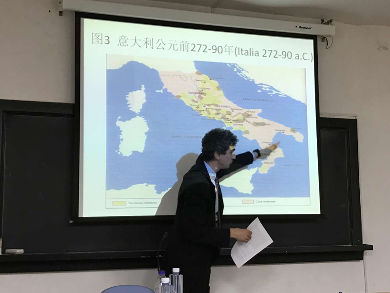 Gagliardi教授的讲座,思路清晰、逻辑严密,清楚展示出了同盟者战争的历史背景,《优流斯法》的内容及其影响。其精彩的讲座赢得了在座师生的热烈掌声。