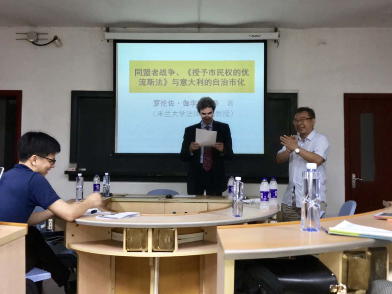 最后,徐国栋教授对本次讲座做出了总结并发表自己的看法,以及带头提出了一些问题,与会学生亦提出了一些问题,由徐国栋教授翻译。主要问题有:《优流斯法》之前的自治市和之后的自治市之间有哪些区别?罗马公法的变革对罗马私法有哪些影响以及如何影响,一般意义上的和《优流斯法》特殊案例层面上的?意大利为何未曾成为一个行省?拉丁人和意大利人区别何在?有无种族歧视的问题?自治市与罗马的关系能否类比中世纪的国王和封建领主之间的关系?8-10个新部落到底维持多久?Lorenzo Gagliardi教授对这些问题一一作出了解答。讲座在融洽温馨的氛围中圆满结束。