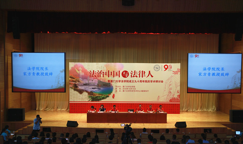 10月15日,由厦门大学法学院主办的“法治中国与法律人”暨厦门大学法学院成立九十周年院庆学术研讨会在厦门大学科学艺术中心三楼报告厅举行。