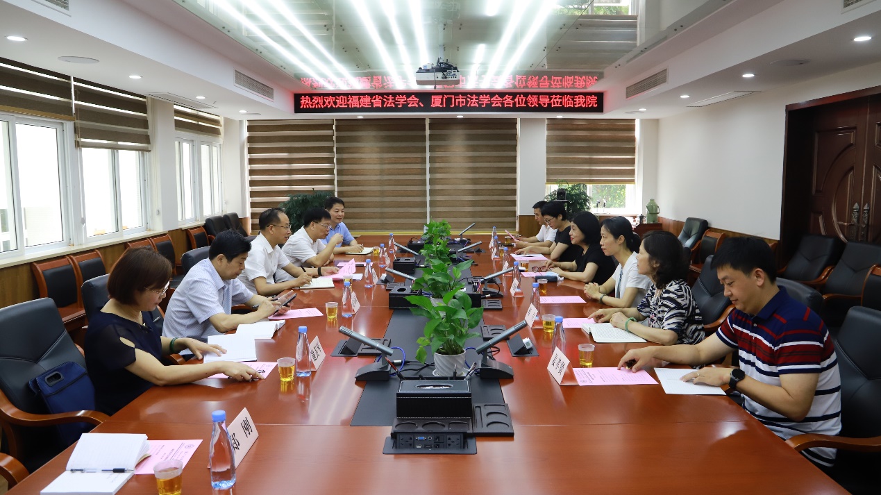 5月21日上午,福建省法学会专职副会长黄克锒、办公室主任雷玉环、研究部主任吴长乐、一级调研员谢美琴、厦门市法学会专职副会长吴少鹰等一行莅临我院进行调研,在B220会议室与我院领导及教师代表进行座谈。法学院院长宋方青教授、副院长朱晓勤教授以及蒋月教授、丁丽瑛教授、肖伟教授、姜孝贤助理教授出席了本次座谈会。