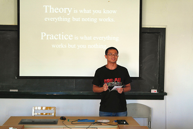 李逸斯学长则以“Theory is what you know everything but nothing works;practice is what everything works but you know nothing”两句话总结了其考博的感悟。学长首先向我们分享了其为什么选择考博以及考博可能带来的优势,紧接着学长提醒我们考博要提前做好前期的准备工作——要提前准备好英语成绩以及联系导师。学长认为考博的路程无疑很艰辛,要做好时间的统筹安排以及坚守底线做好取舍。