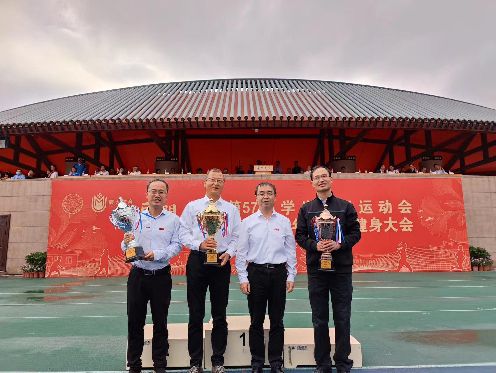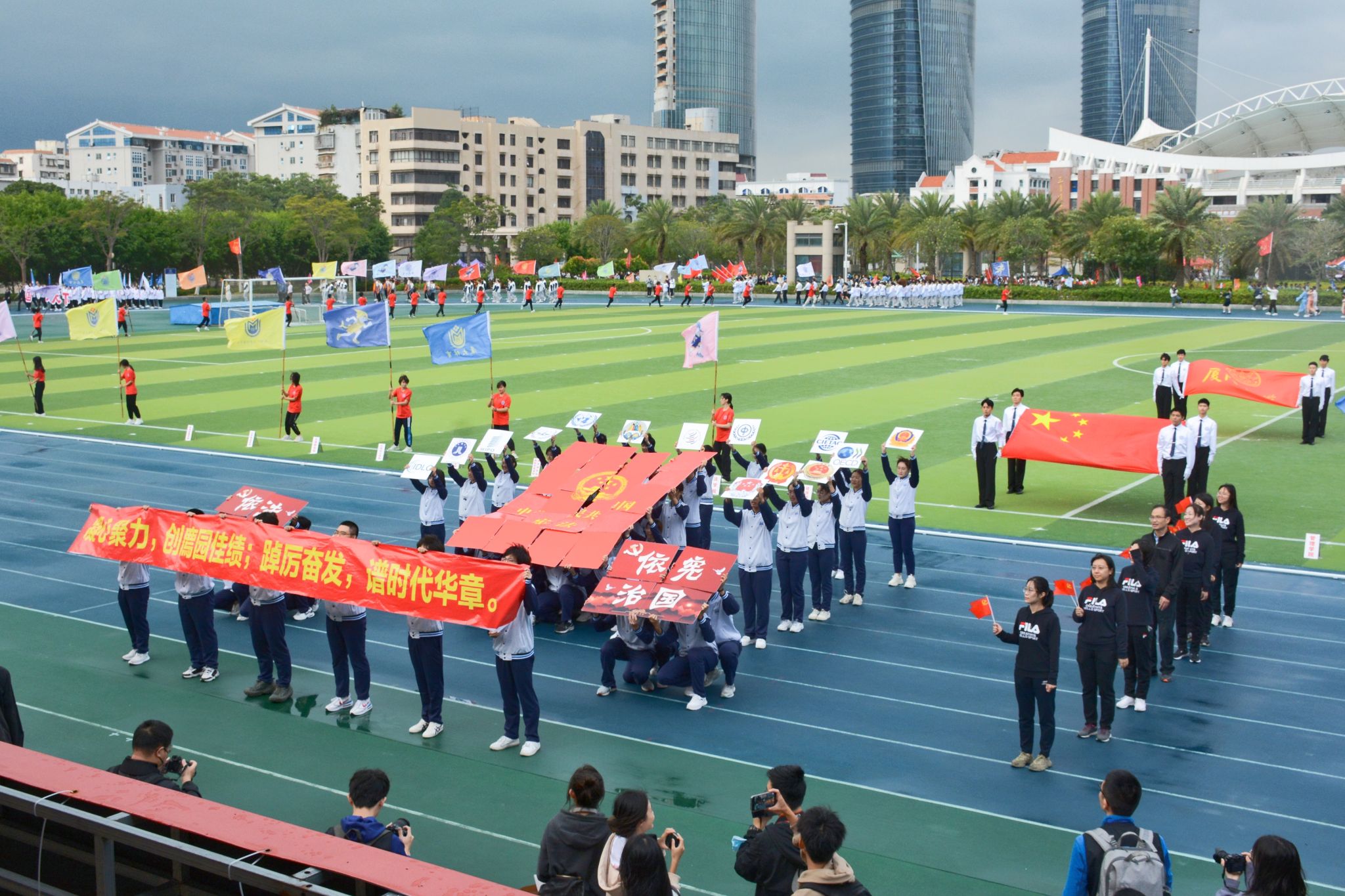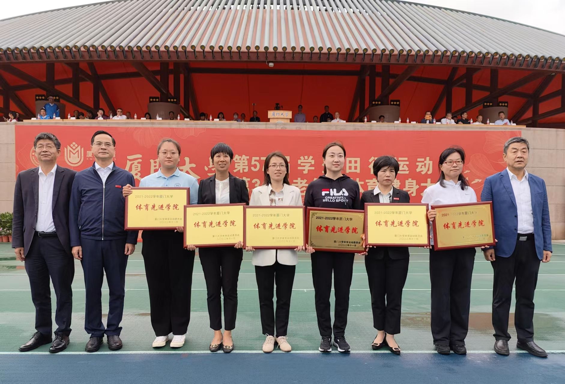 11月4日上午,厦门大学第57届学生田径运动会、第21届教职工运动会暨第31届老年人体育健身大会在思明校区演武场正式开幕。学校领导,学校体育工作领导小组成员,机关各部门负责人,各学院、研究生院党政领导,师生代表出席开幕式。法学院党委许和山书记于主席台观礼。