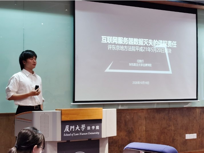 第二阶段,华东政法大学博士后王苑介绍了我国传统民法语境中和信息时代背景下“个人信息保护”的不同表达,并结合案例强调信息处理关系中“自主利益”的观点。厦门大学硕士研究生刘业以“个人信息保护的公私并行路径:我国实践及欧美启示”为题进行发言。他首先明晰公法上个人信息保护路径的法理依据,其次展示了主要国家私法保护路径的适用范围,最后提出个人信息保护公私并行路径的制度优化建议。华东政法大学硕士研究生任我行则以东京地方法院判决为切入点,从信息与数据的区分、法律属性及损害识别等层面具体分析“数据灭失”的损害判定标准,并针对互联网数据供应商侵权责任的归责原则提出建议。