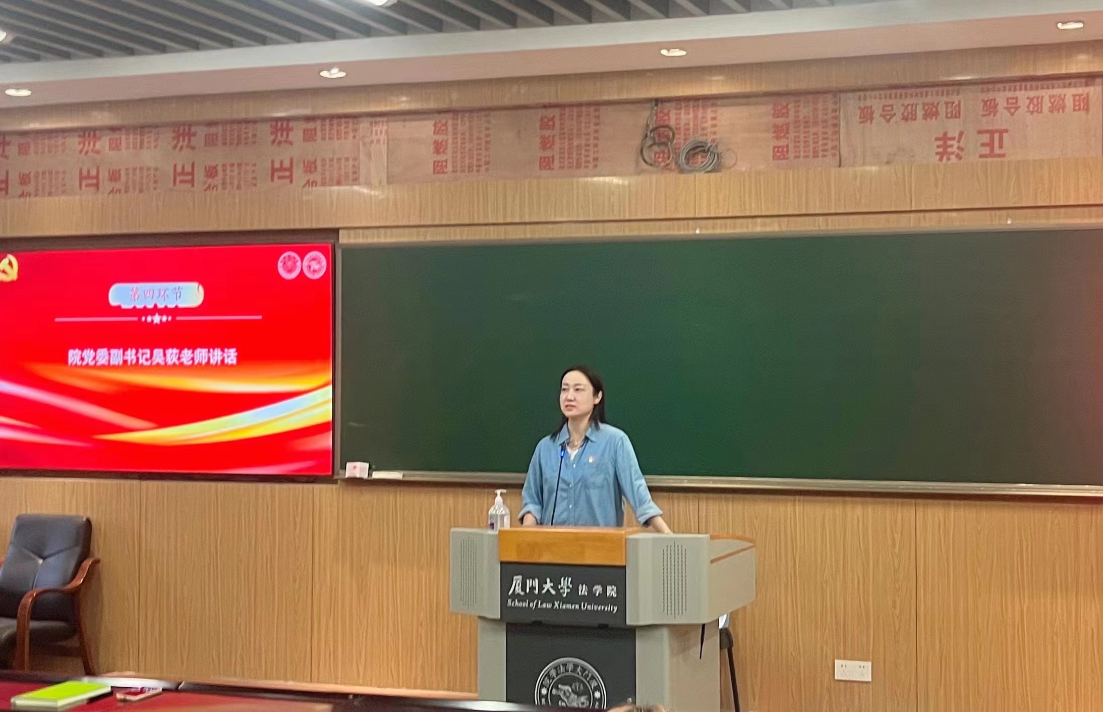 学院党委副书记吴荻作总结讲话。她首先对研习社党支部和“廌”在四方先锋党支部的工作表示充分肯定,希望各支部向先进看齐,争创模范党支部。她强调,基层党务干部队伍要坚定理想信念,提高政治站位;注意活动内容丰富性,活动形式多样性;活动开展要紧密结合当前热点。各支部要加强研学共建,推动党建创新和组织优化,不断激发党支部在学生工作中的创新力和活力。她还特别强调,党员发展工作是党的建设中一项长期性重要工作,支委们要高度重视,规范发展程序,做好会议记录等细节性工作,努力做到党员档案“无懈可击”。