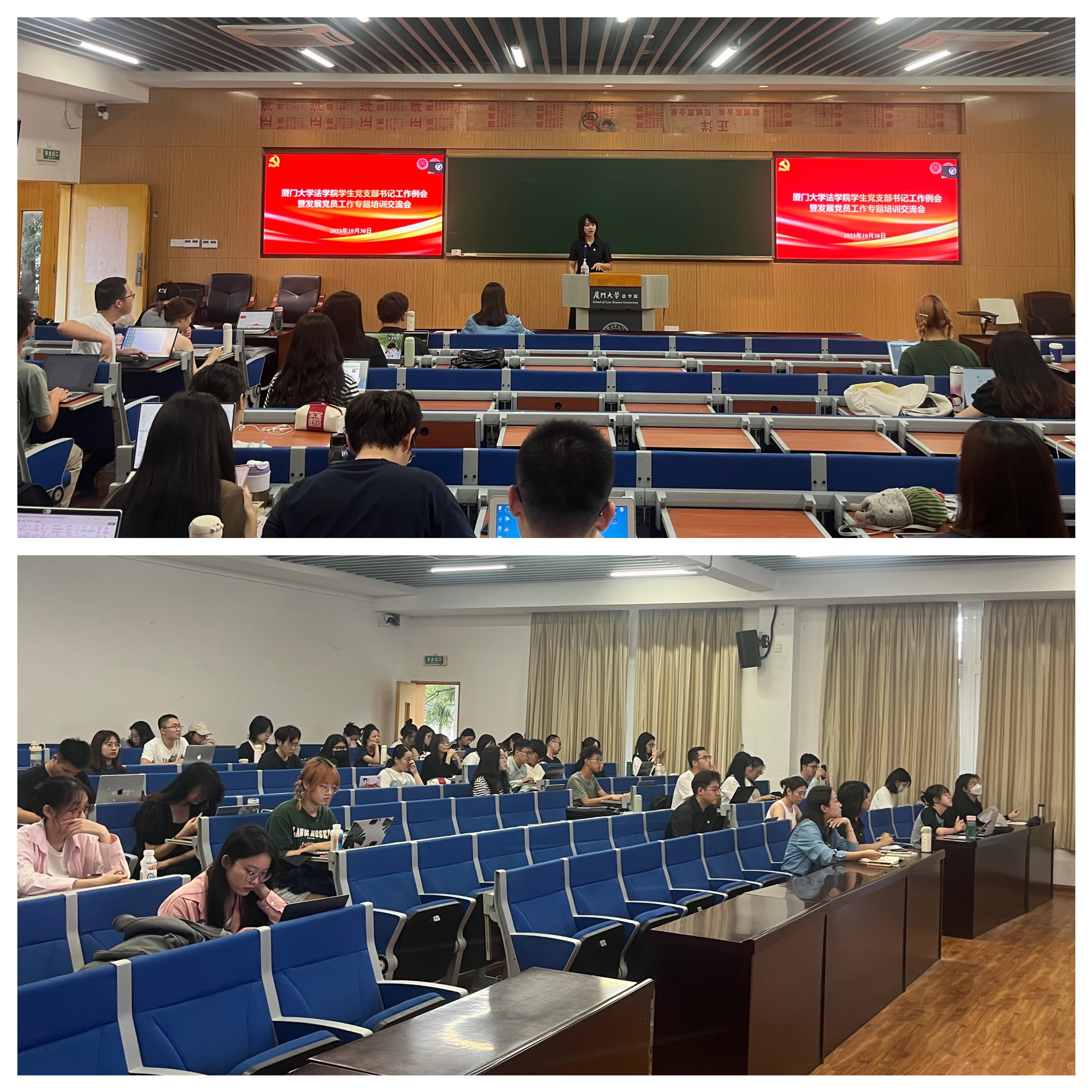 为进一步提高党务干部业务能力,提升基层党建工作水平,10月30日,法学院党委组织召开学生党支部书记工作例会(扩大会)。法学院党委副书记吴荻、党务秘书林少婷,各年级学生党支部书记、支委及法学院第93期党校学员等120余人通过线上线下相结合的方式参加本次例会。会议由党务秘书林少婷主持。